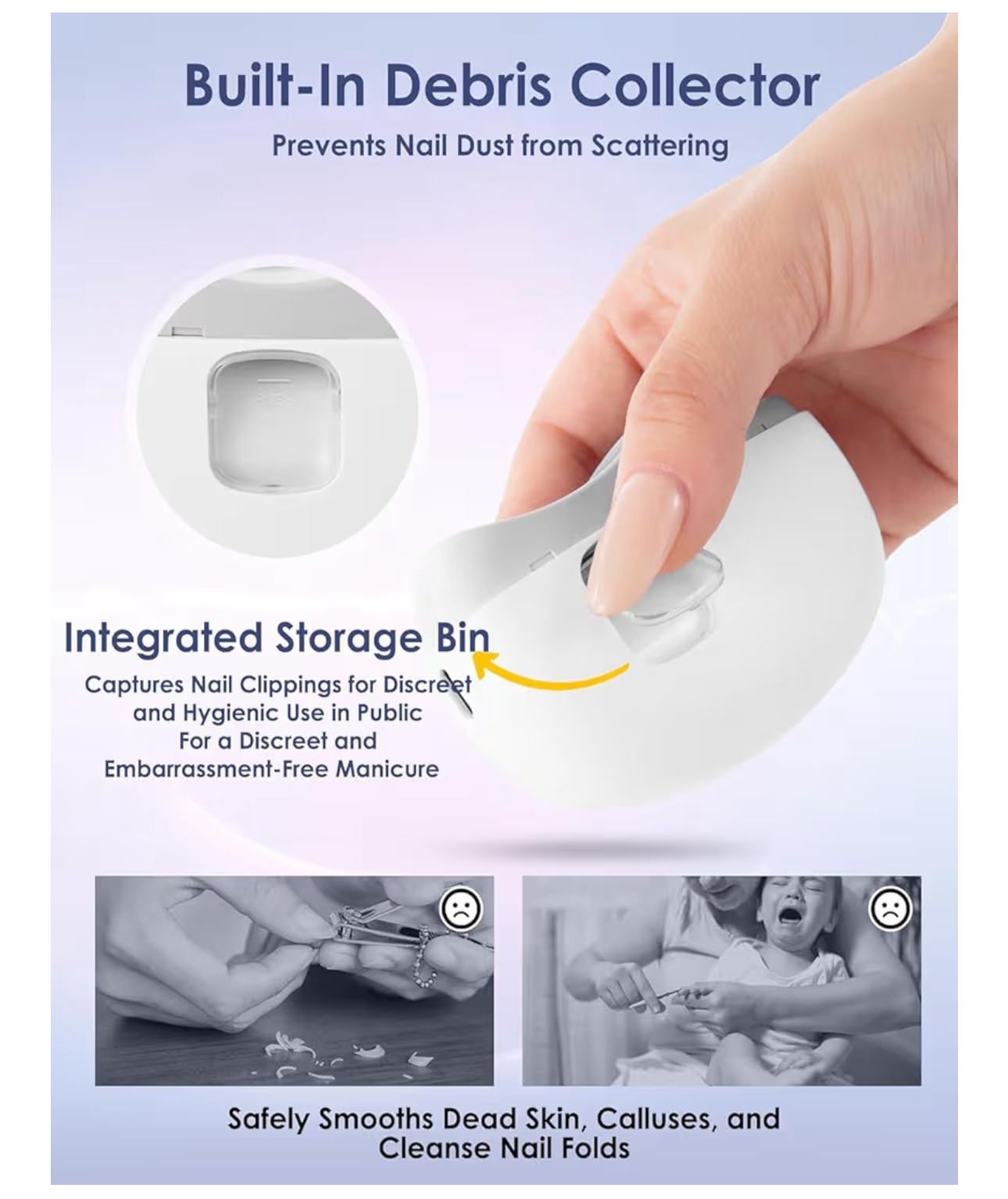Diseñado para reducir el riesgo de cortes accidentales. Ideal para bebes, adultos y personas mayores. Mas tranquilidad y menos preocupaciones al momento de arreglar las uñas.